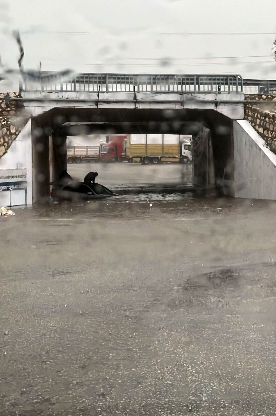 Finike, Demre ve Kumluca’da da sokaklar göle döndü. Demre’de bazı araçlar su içinde mahsur kaldı; bir sürücünün otomobilinin üzerine çıkarak yardım beklediği görüldü.