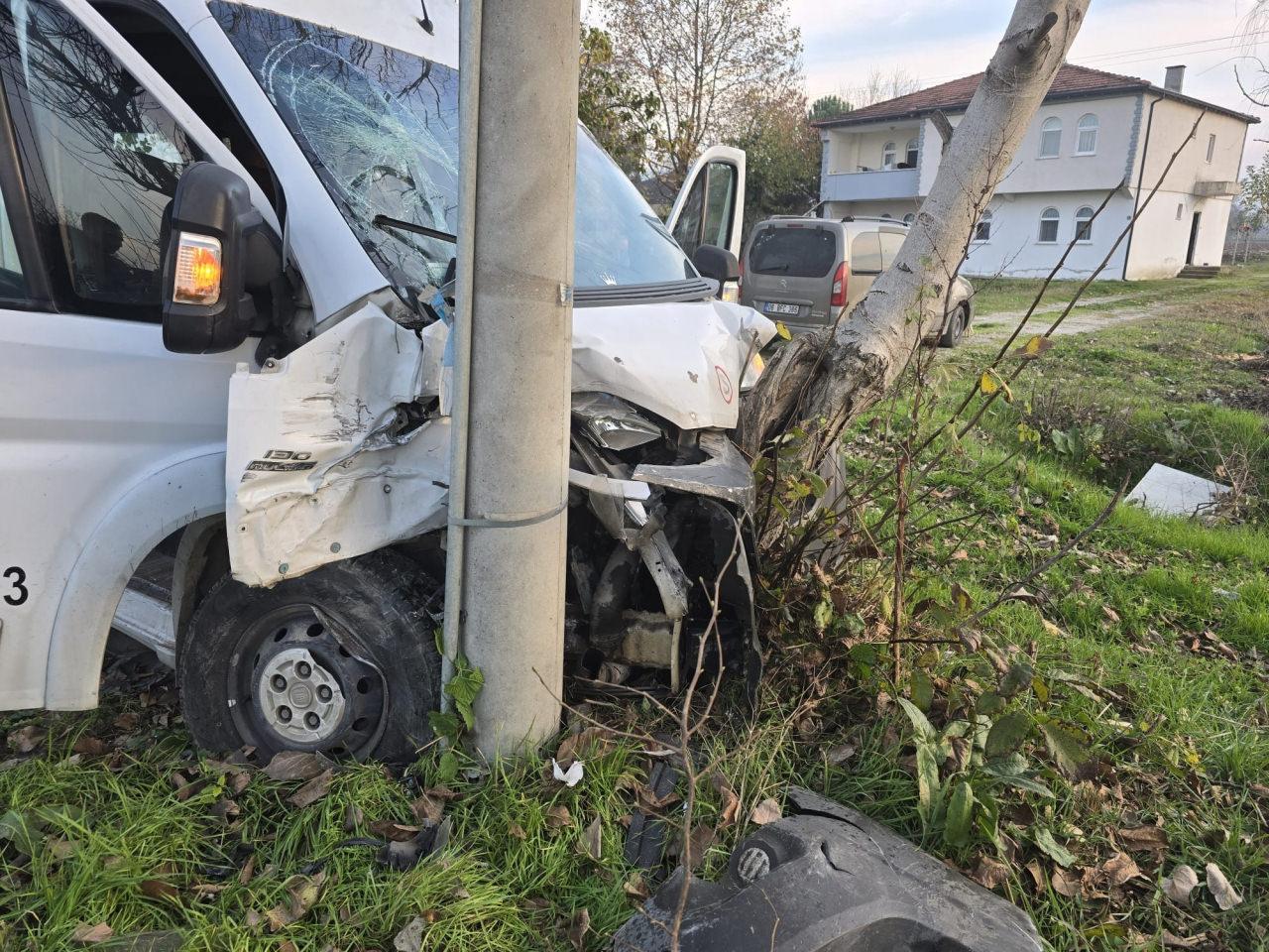 Çarpışmanın şiddetiyle kontrolden çıkan her iki araç, yol kenarında bulunan bir ağaca ve enerji nakil hattına ait beton direğe çarparak durabildi. Kazada, araç sürücüleri Cayan K. ve Mustafa G. ile işçi servisinde yolcu olarak bulunan Ramazan K. (38), Mesude Y. (48), Fatma B. (49), Seyran V. (42), Veysel A. (35) ve kimlikleri öğrenilemeyen 4 işçi daha yaralandı.