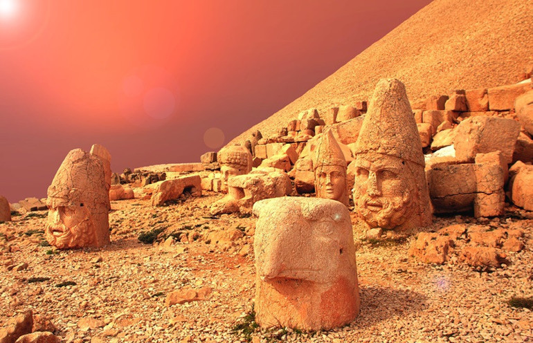 Yaklaşık 2 bin yıl önce Kommagene Krallığı’nın hükümdarı olan I. Antiochos, farklı kültürlerin birleştiği bu topraklarda hem tanrılarla yan yana anılmak hem de sonsuza dek hatırlanmak için Nemrut’un zirvesine dev bir anıt kompleksi inşa ettirdi. Yunan, Pers, Asur ve Ermeni geleneklerini harmanlayan bu heykeller, bugün hâlâ “Tanrıların Tahtı”nı kutsayan sessiz koruyucular olarak duruyor.